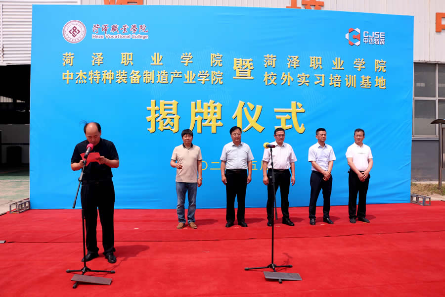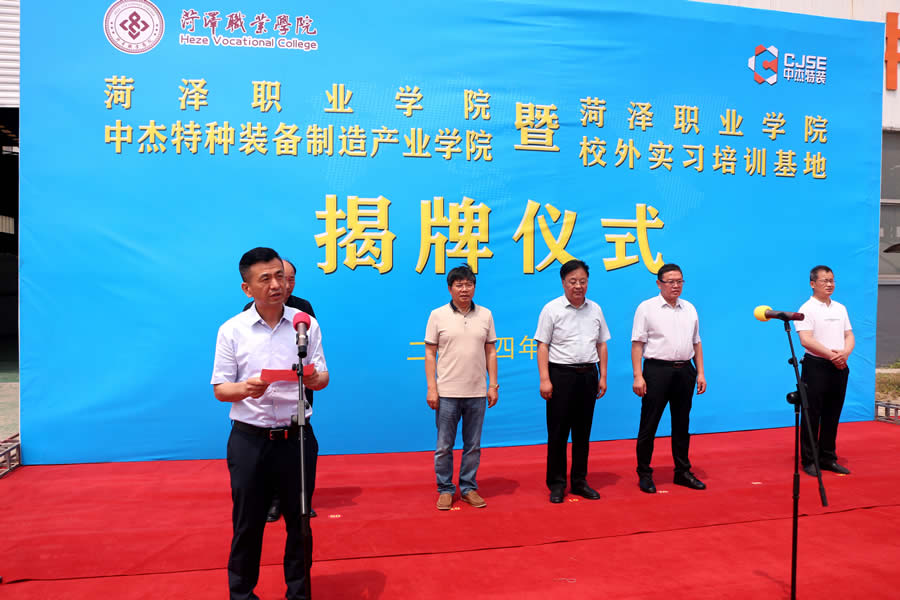 為深化產(chǎn)教融合、加強校企合作,實現(xiàn)學生技能培養(yǎng)與行業(yè)市場需求的高度契合,為行業(yè)與社會培養(yǎng)輸送源源不斷的高素質(zhì)技能人才,5月20日,“菏澤職業(yè)學院中杰特種裝備制造產(chǎn)業(yè)學院”暨“菏澤職業(yè)學院校外實習培訓基地”揭牌儀式隆重舉行。菏澤職業(yè)學院黨委副書記、院長袁宗建、菏澤市企業(yè)家協(xié)會常務秘書長鄧顯杰、菏澤魯西新區(qū)管委會副主任、文化衛(wèi)生服務中心主任孔魯民、山東中杰特種裝備股份有限公司董事長張春雨、菏澤職業(yè)學院黨委委員、宣傳部部長郭志合出席揭牌儀式;菏澤職業(yè)學院師生代表,中杰特裝員工代表等100余人參加活動。