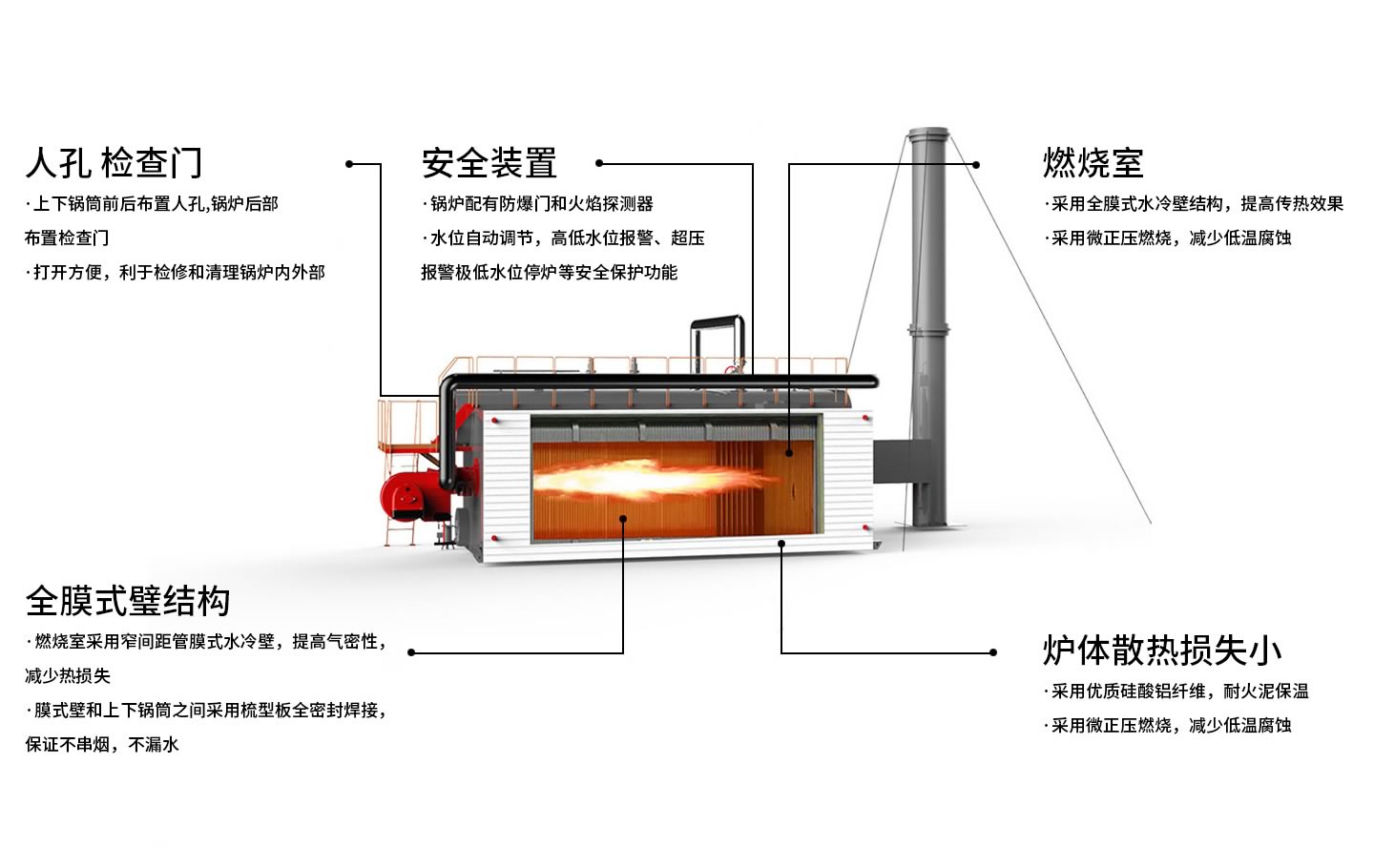 1. 全膜式壁結(jié)構(gòu),本體不漏風(fēng),排煙熱損失小,熱效率高;