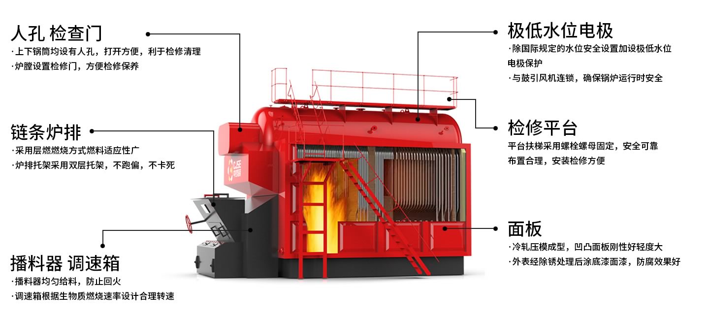 大塊爐排片或鱗片式爐排片,并保證有足夠的爐排有效面積,在提高爐排運(yùn)行可靠性的同時(shí),保證燃料充分燃燼。